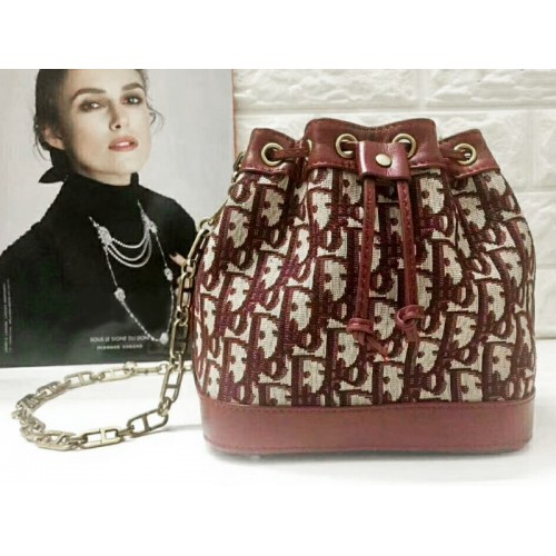 Dior Diorissimo Drawstring Bucket Bag Burgundy