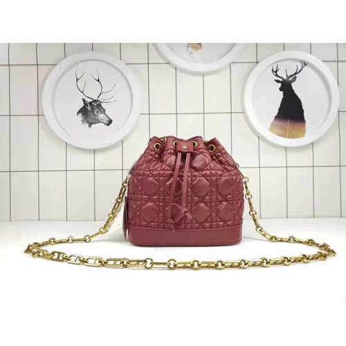 Dior Mini Miss Dior Lambskin Bucket Bag Burgundy
