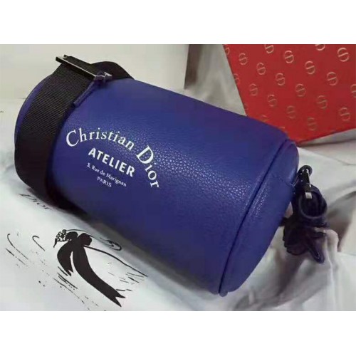 Denim blue grained calfskin with "Christian Dior Atelier" print