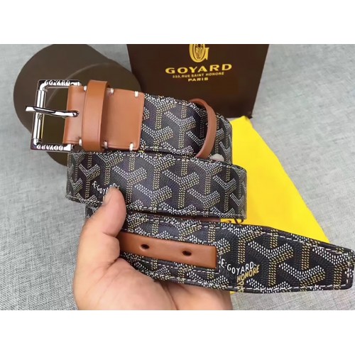 Goyard Chevron Goyardine Leather Belt Black With Brown Leather Trim