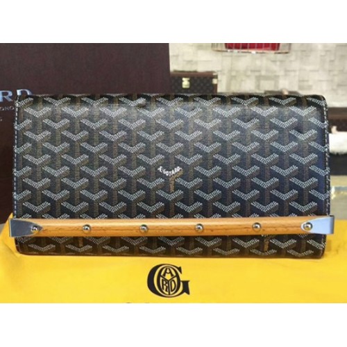 Goyard Chevron Monte Carlo Bois Clutch Black With Brown Leather Trim