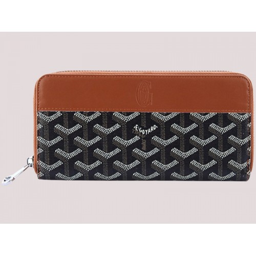 Goyard Goyardine Matignon Wallet Black With Brown Leather Trim
