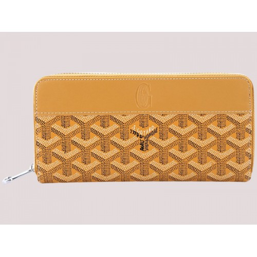 The bold style and exceptional quality of this signature Goyard clutch wallet make it fabulously functional for everyday. The wallet is a standard size clutch wallet chevron on canvas. The wallet features a 3/4 wrap around zipper and leather top paneling. This opens to a leather interior with pockets, zipper pockets, card slots, billfolds and room for papers, bills, tickets, receipts etc. This is an excellent wallet that is functional for everyday use such as a chic grab and go clutch for all of your errands and appointments that call for the special touch of tradition and sophistication from Goyard.