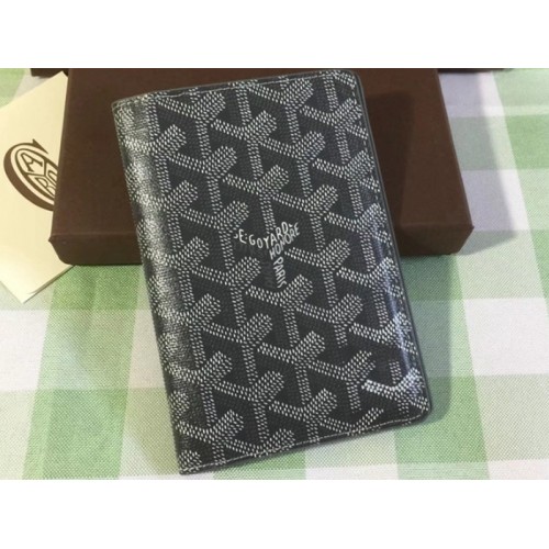 Goyard passport wallet with five card slots, single passport slot and signature design throughout.