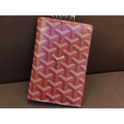 Goyard passport wallet with five card slots, single passport slot and signature design throughout.