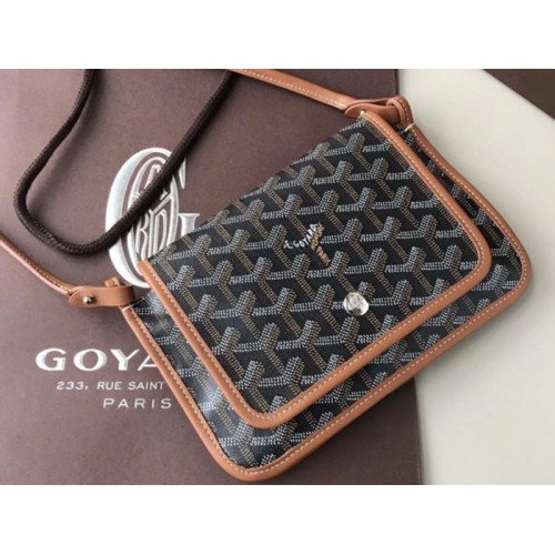 Goyard Goyardine Plumet Crossbody Wallet Black With Brown Leather Trim