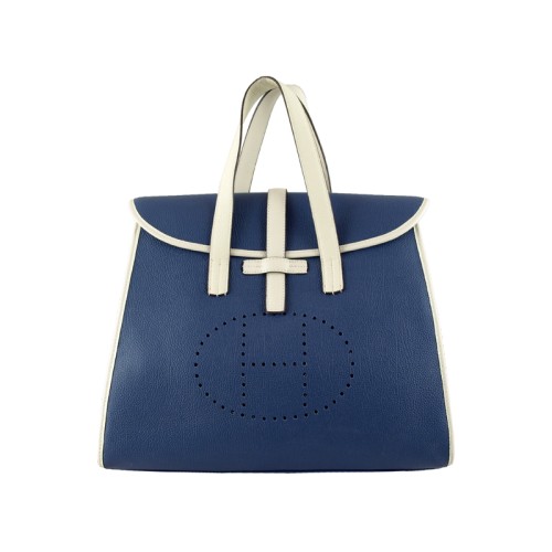 Hermes 08c Flap Bag Blue With Off-White Leather Trim