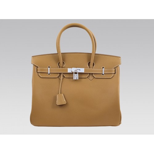 Our replica HERMES 35 in Togo leather features a large inner compartment lined with luscious chevre leather, a large flat, inner pocket, silver hardware plated with palladium,  Hermes lock and key with Hermes embossing, four protective feet  prevent marks and scuffing on the base. Large double rolled handles enable you to carry, or wear this bag on your shoulder.