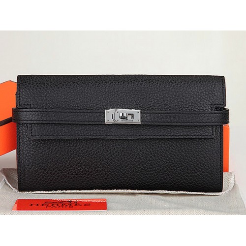 Hermes Dogon Togo Original Leather Kelly Long Wallet Black