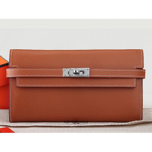 Hermes Epsom Original Calfskin Kelly Long Wallet Camel