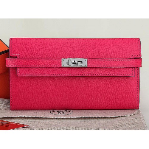 Hermes Epsom Original Calfskin Kelly Long Wallet Hot Pink
