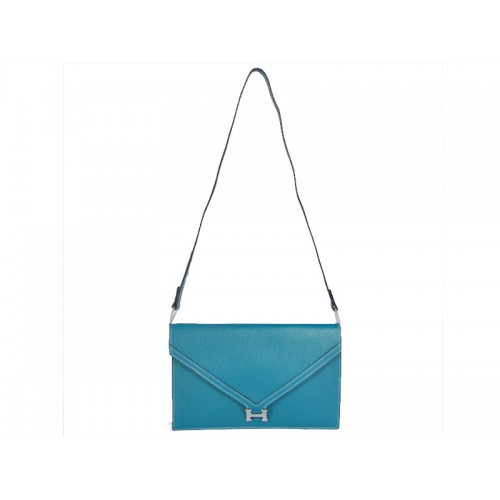 • Hermes Pilot Envelope Clutch Blue With Silver Hardware