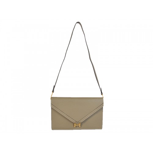Hermes Pilot Envelope Clutch Grey With Gold Hardware