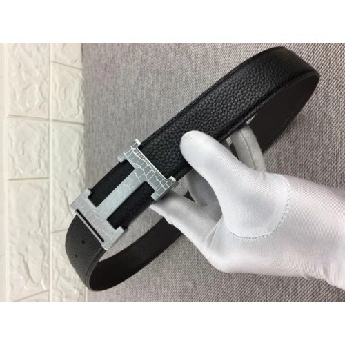 Hermes Silver H Belt Buckle & Reversible Leather Strap Black