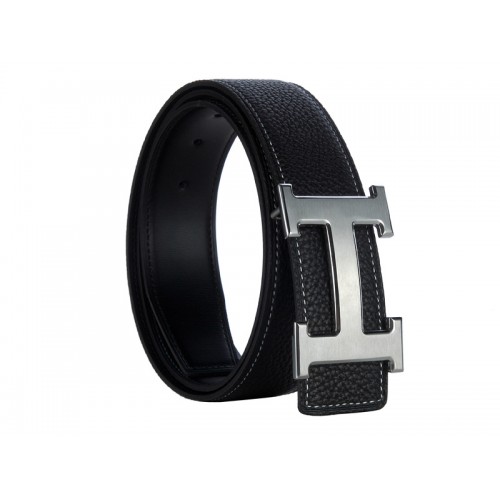 Hermes Togo Leather Belt With Silver H Buckle Black