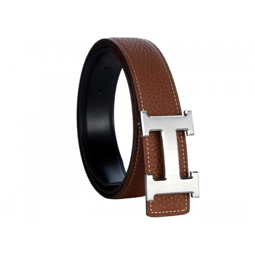 Hermes Togo Leather Belt With Silver H Buckle Brown