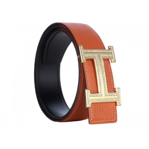 Hermes Togo Leather Gold H Buckle Belt With Diamond Mount Orange