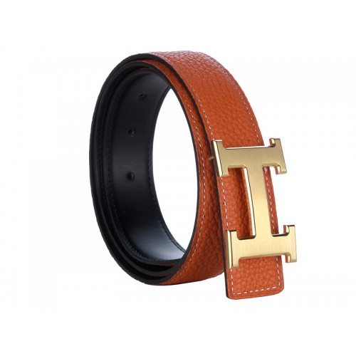 Hermes Togo Leather Wide Belt With Gold H Buckle Brick