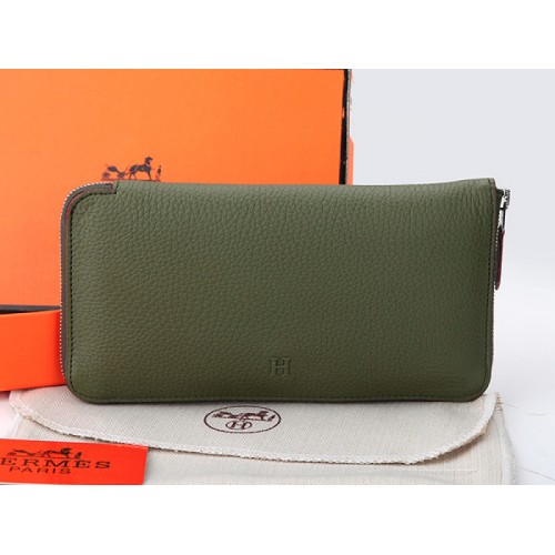 Hermes Zipper Wallet Original Leather Olive