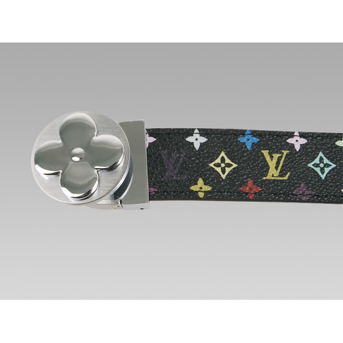• Louis Vuitton Black Multicolore Belt With Round Flower Silvery Buckle