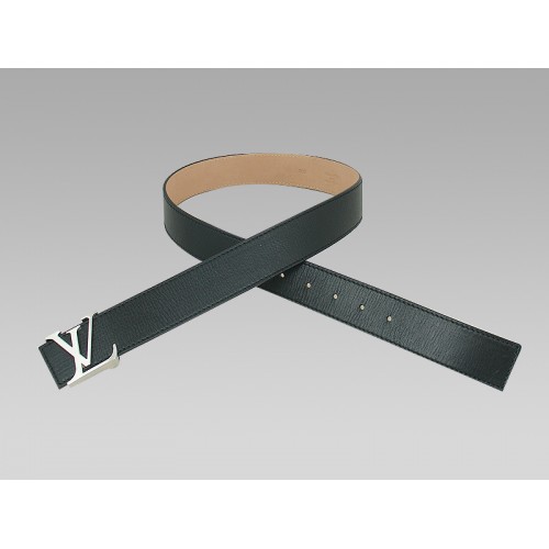 Louis Vuitton Initials Black Leather Belt With Silver Buckle