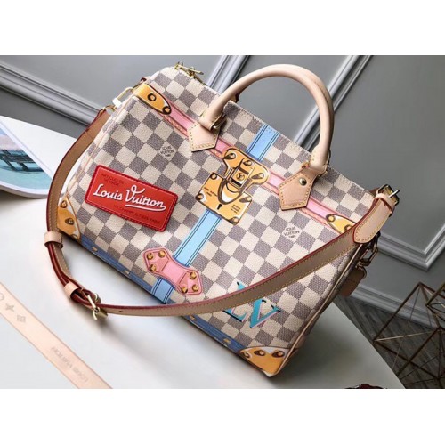 Fashioned in Damier Azur coated canvas and leather patches adorned with trompe l'oeil screen prints of trunk corners and historic LV locks, this Speedy 30 is the very essence of LV style. For those who wish to flaunt their fashion credentials.