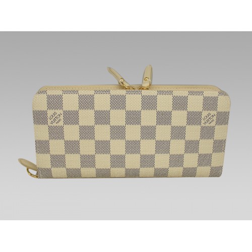 This sensibly sized wallet creatively combines practicality with function and fashion.Our impeccably replicated Damier Azure Insolite Wallet features a grained calf leather interior lining. and has a zippered pocket, two flat pockets, and credit card slots. Dual zippers with leather pulls and inside snaps secure the interior contents. The Damier Azur  Insolite wallet replica is not only functional but  attractive as well making it hard to store in handbag so carrying it as a clutch is a useful option also.   .
