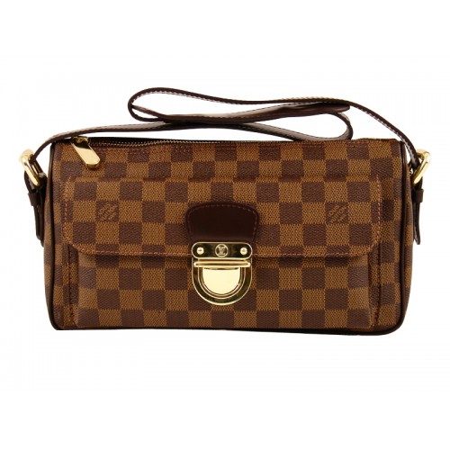 A new elegant and modern bag in Damier canvas, Louis Vuitton's Ravello GM features a convenient gusseted exterior pocket with a charming press-lock closure. The roomy, red microfiber-lined interior features ample space for a busy day's essentials. Finished with an adjustable brown calf leather shoulder strap.