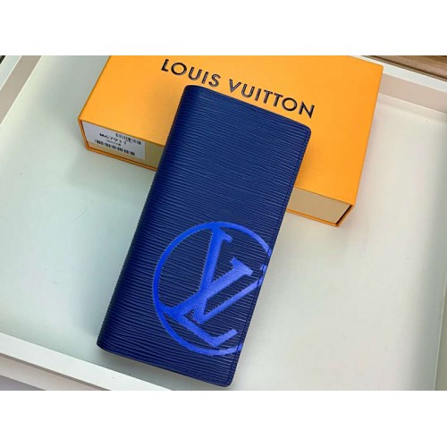 • Louis Vuitton Epi Leather Brazza Wallet Navy Blue With Blue Initials m67911