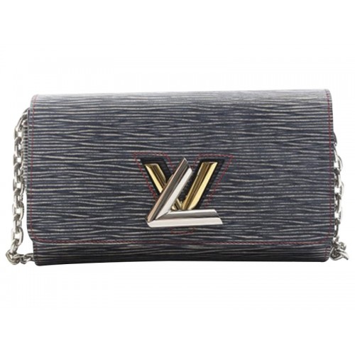 Louis Vuitton Epi Leather Twist Chain Wallet Denim Black