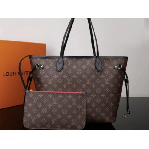 Louis Vuitton Monogram Canvas Neverfull Mm With Black Leather Trim