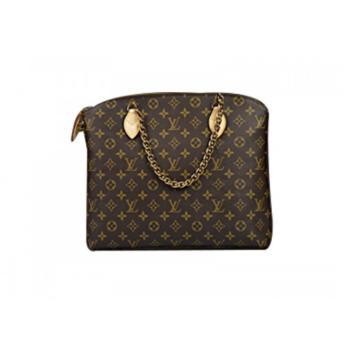 This rounder, more feminine reworking of the Lockit bag features extra supple Monogram canvas so it can be hand-carried folded over. The dramatic hammered pearl chain handles add to its vintage appeal.