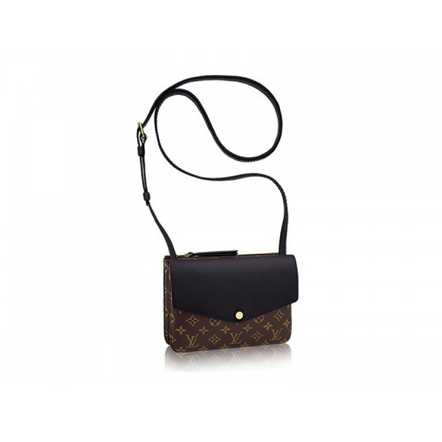 No need to think twice: the new Twinset offers on-trend design and flawless functionality in a single lightweight and compact bag. Twinset transitions from day to evening with ease: worn cross-body for a look of casual chic, or suspended elegantly from the shoulder by its long leather strap. The front and back compartments (as well as a central, “secret” pocket) keep belongings organized. Crafted of Monogram canvas and grained calf leather, Twinset is offered in classic black as well as in two playful and high fashion shades.