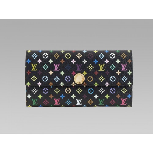 Spacious enough to accommodate your belongings but compact enough to be a clutch, the replicated Sarah Wallet in Black Monogram Multicolore is the perfect way to stay fashionably organized.This accessory features an abundant supply of compartments for holding credit cards, bills, and papers. The Sarah wallet replica even has a zippered change pocket and a snap flap closure to guarantee your items will be safely tucked away. Inside you will also find that the interior is lined in Pistachio colored leather, which is from the Spring collection and is a brilliant shade of green. Because of it’s size, this mirror image replica can be comfortably hand carried or stored in a pocket.