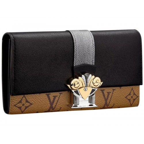 Crafted in Monogram Reverse canvas and calfskin accessorized with a chiseled metallic ornament evocative of the architectural elements that adorn Paris's most regal monuments, this Sarah Wallet is the apogee of elegance. This iconic wallet paid a momentous tribute to the city during the Spring Summer Show 2017. The ingeniously designed interior features a variety of pockets and credit card slots