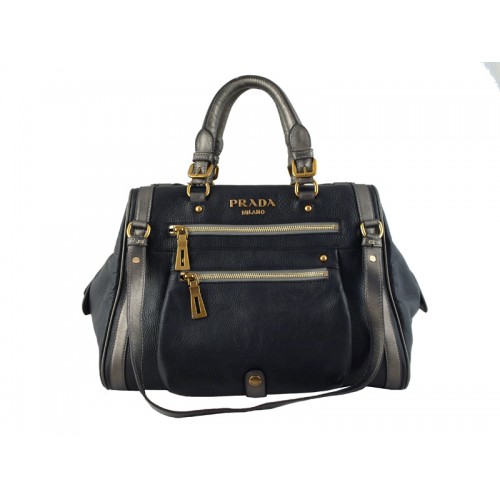 Prada Calf Leather Top Handle Bag Black