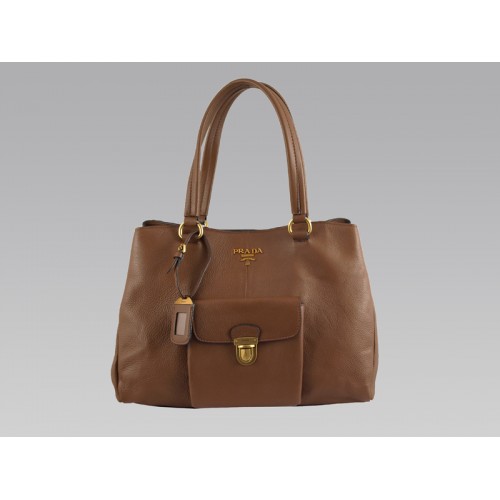 Prada Cowhide Medium Tote With Front Pocket Brown