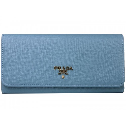 Prada Saffiano Leather Wallet Light Blue
