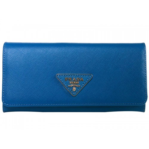 Prada Saffiano Leather Wallet Triangle Logo Blue