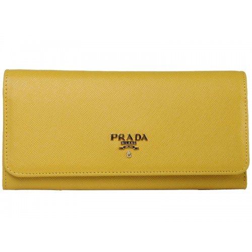 Prada Saffiano Leather Wallet Yellow