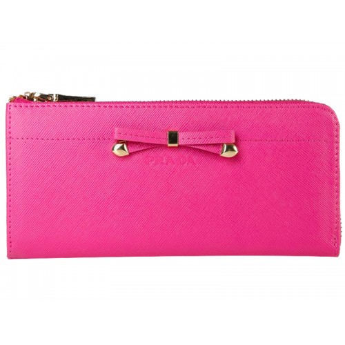 Prada Saffiano Zipper Wallet With Bow Detail Hot Pink