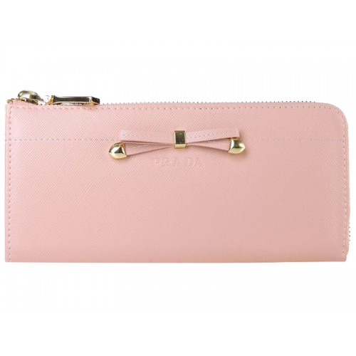 Prada Saffiano Zipper Wallet With Bow Detail Pink