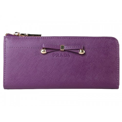 Prada Saffiano Zipper Wallet With Bow Detail Purple