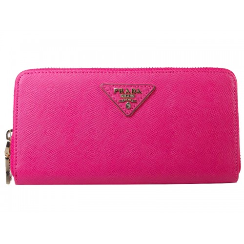 Prada Saffiano Zippy Wallet Triangle Logo Hot Pink