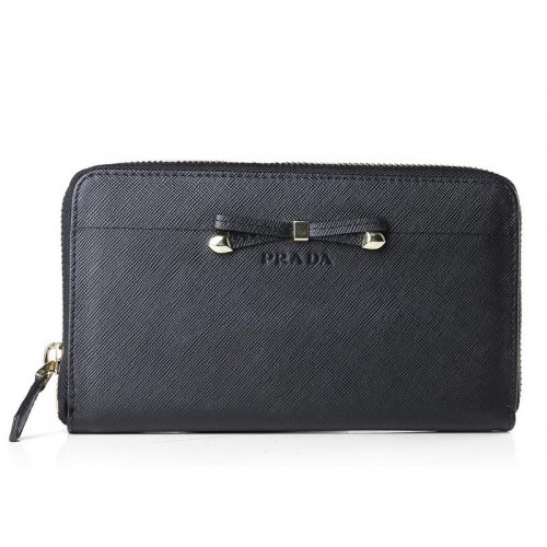 Prada Saffiano Zippy Wallet With Bow Detail Black