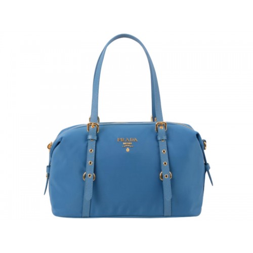 Prada Tessuto Bauletto Satchel Shoulder Bag Blue
