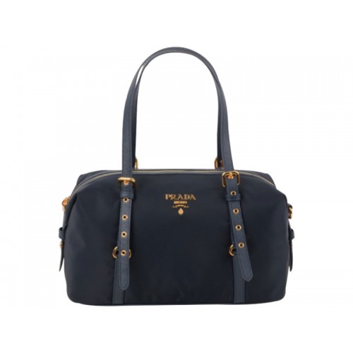 Prada Tessuto Bauletto Satchel Shoulder Bag Dark Blue