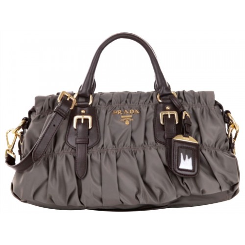 Prada Tessuto Gaufre Nylon Top Handle Bag Dark Grey