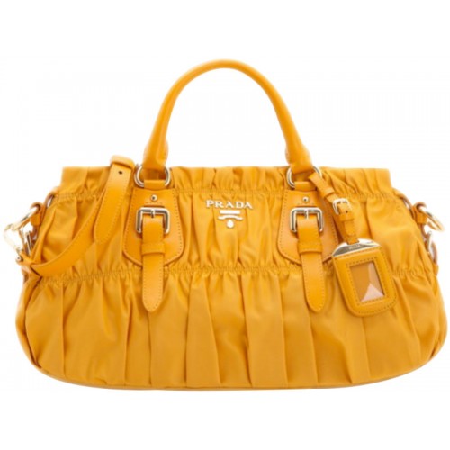 Prada Tessuto Gaufre Nylon Top Handle Bag Yellow