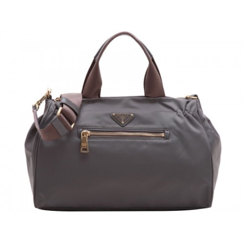 Prada Tessuto Nylon With Leather Trim Bauletto Shoulder Bag Grey
